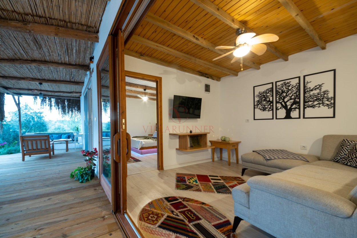 Ege'nin en gözde tatil merkezlerinden Akyaka'da bulunan Çam Evi, 4 misafir konaklama kapasitesi sunan özel havuzlu villalardan biridir. Marmaris'e 25 km mesafede bulunan tek katlı villada, havuz alanına kapıları açılan 2 yatak odası ve 1 banyo bulunmaktadır. Yatak odalarında birer çift kişilik yatak ve klima mevcuttur. Salonda yer alan kanepe bir çocuk misafir ağırlama olanağı sağlamaktadır. Çam Evi, Akyaka ormanına bakan mutfağında tüm temel mutfak gereçlerini bulundurmaktadır.