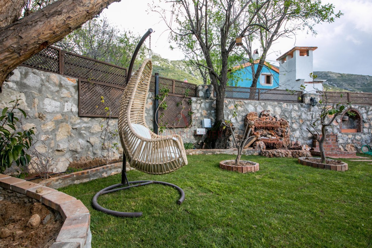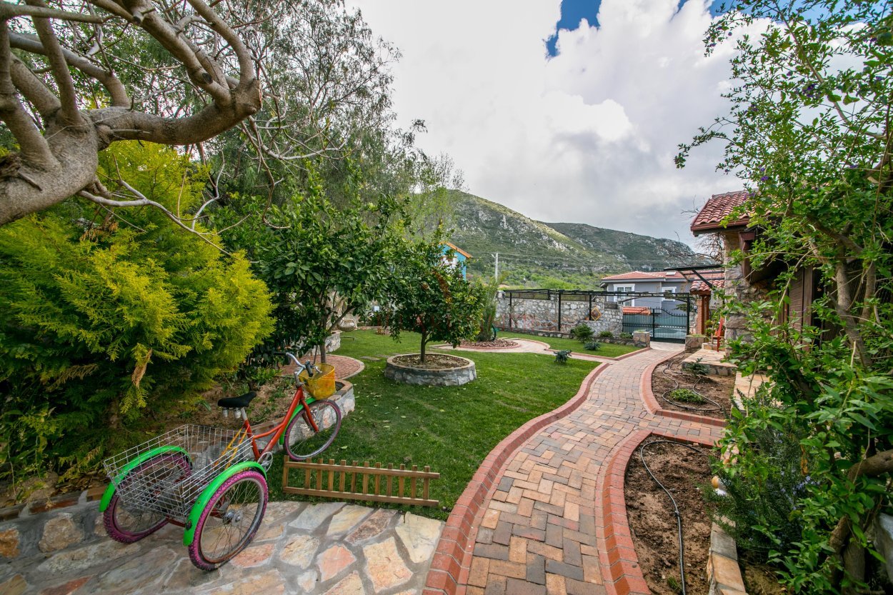 Geniş bir çim bahçe, salıncak, havuza bakan odanın önünde ise otantik bir oturma grubu bulunmaktadır.