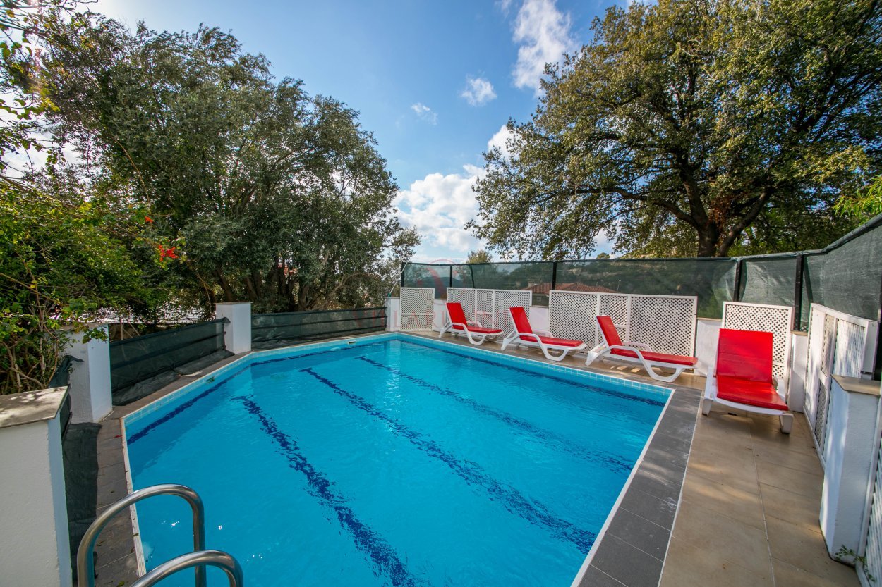 700 cm x 630 cm x 150 cm ölçülerinde bir özel havuza sahiptir, Havuz Alanında 4 şezlong ve 1 şemsiye vardır.