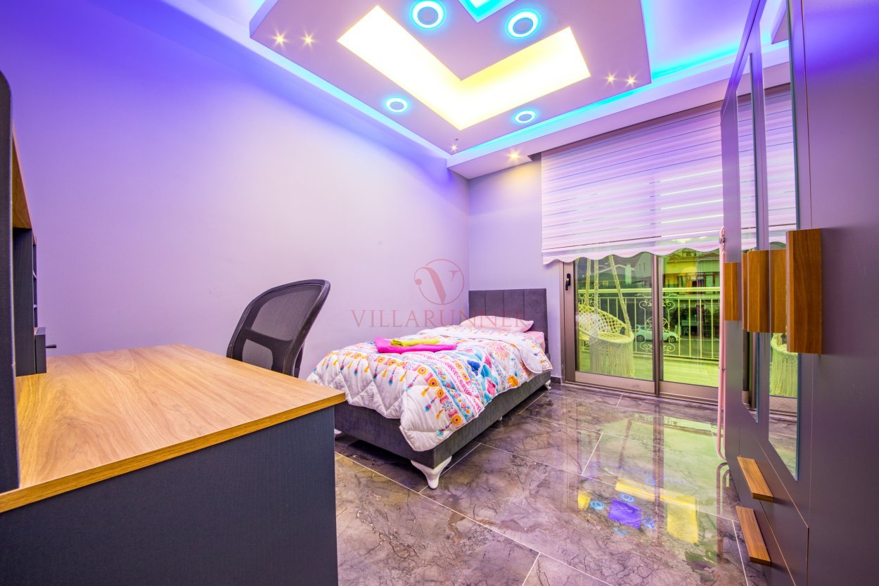 Yatak Odası 4: 2 adet tek kişilik yatak, klima, elbise dolabı, wc, masa ve sandalye, balkon (2. kat)