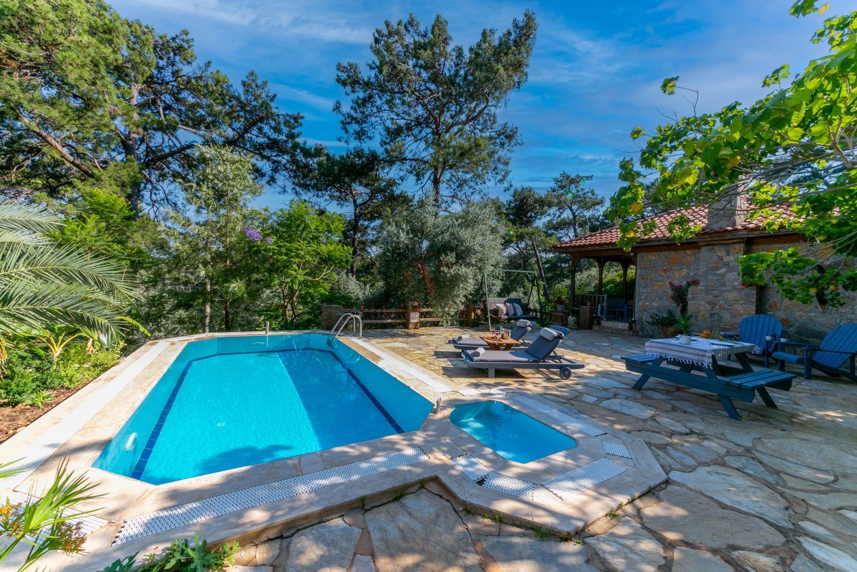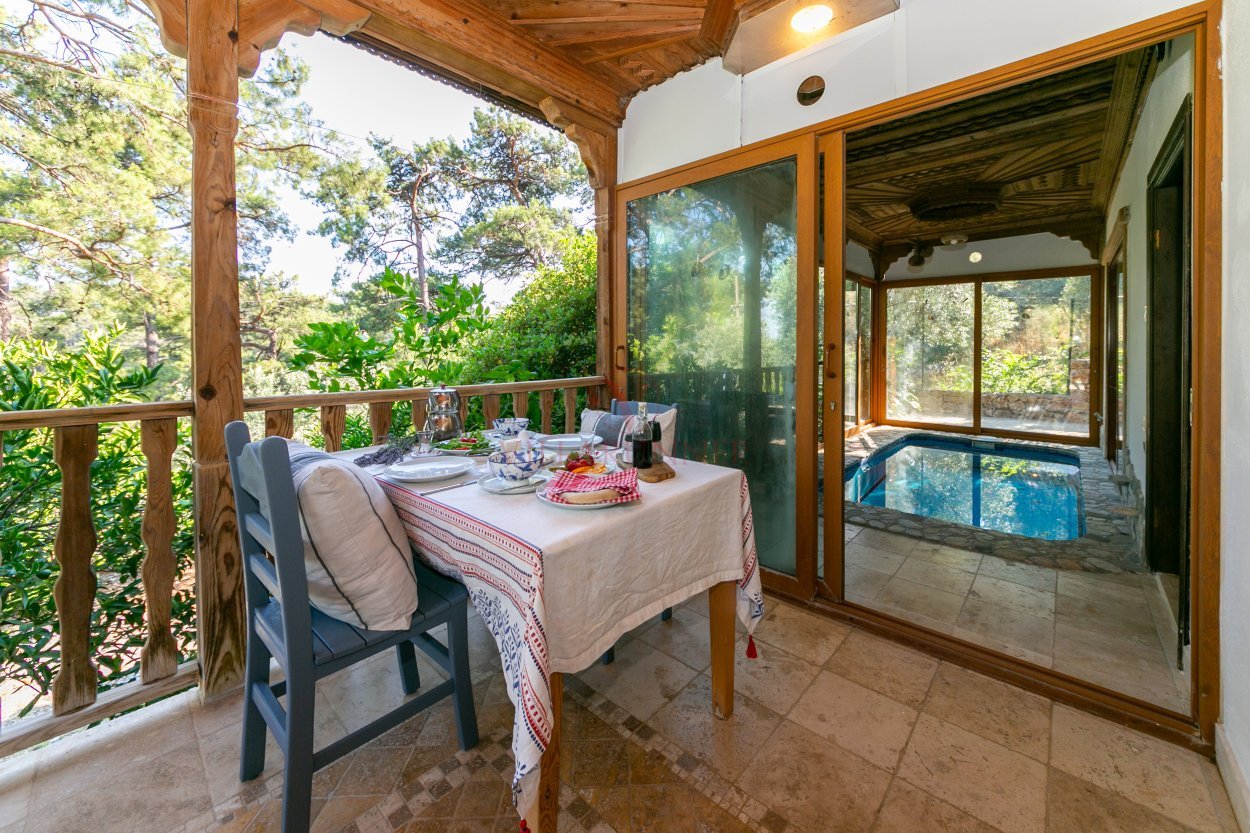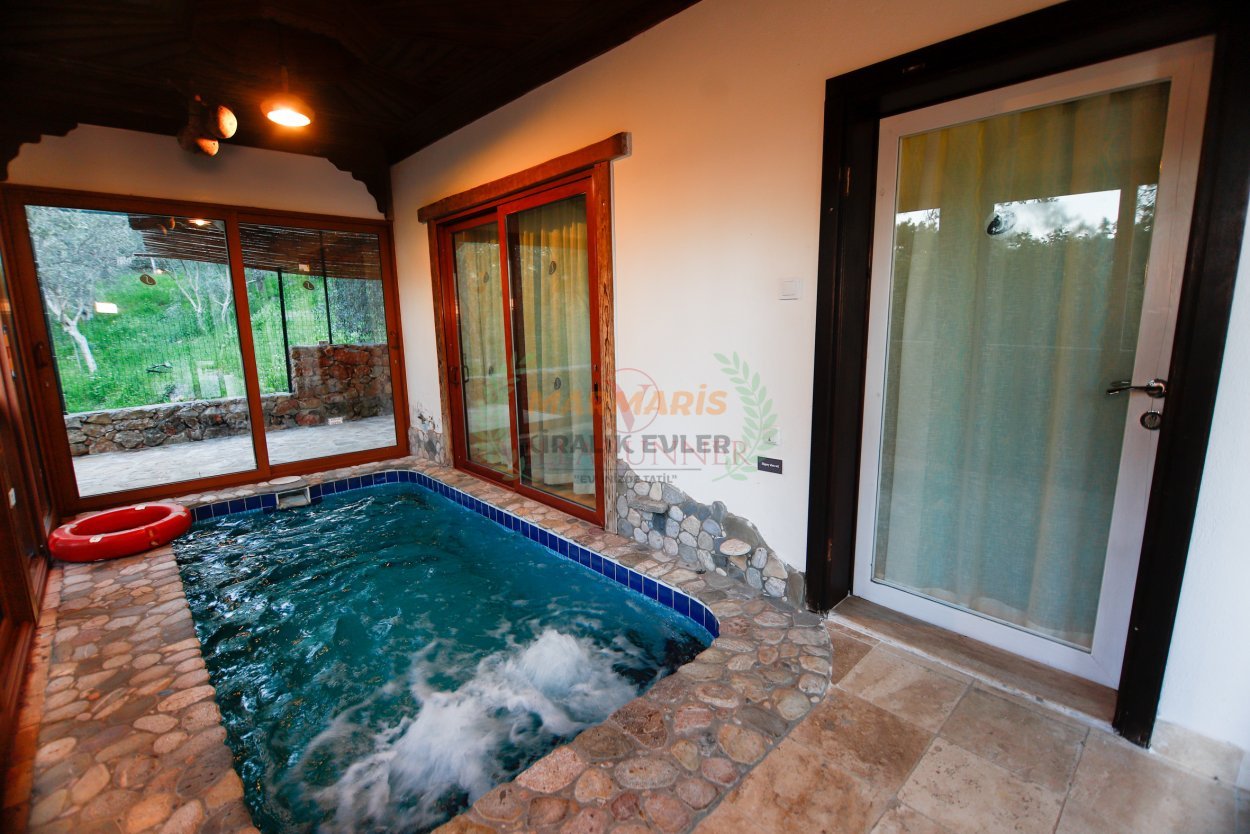 Muğla'nın gözdelerinden Akyaka mahallesinde bulunan tek odalı villa, özellikle çiftler ve balayı misafirleri için harika bir seçenektir. Orman manzarasının yanı sıra keyifli bir havuz olanağı sunan villanın en ayırt edici özelliklerinden birisi, kış misafirleri düşünülerek yaptırılmış kapalı ısıtmalı havuzudur. Yatak odası ve salonu klimalı olan villanın açık mutfağı ise tam donanımlıdır.