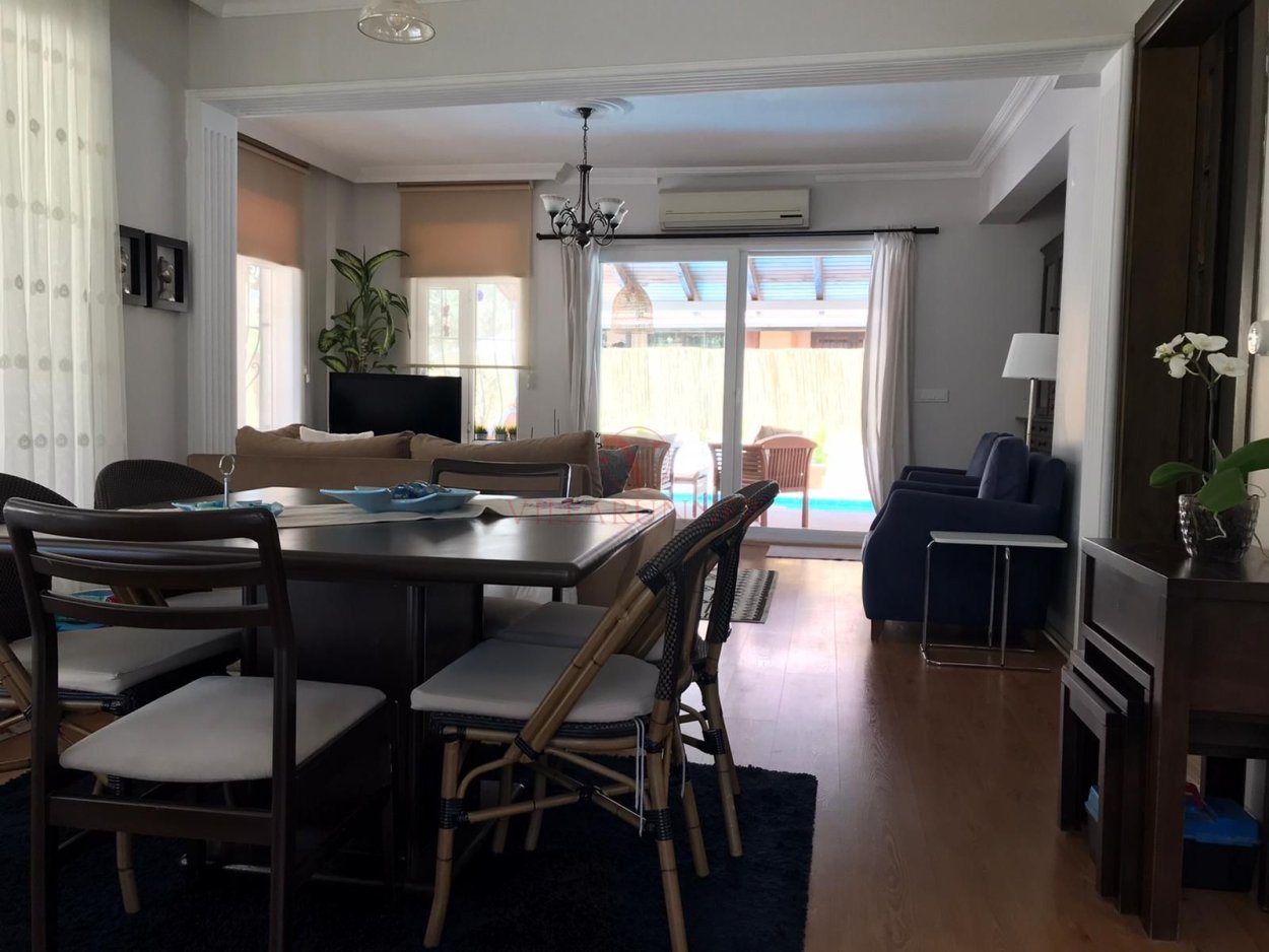 Villanın 800 x 400 x 150cm ölçülerinde özel bir yüzme havuzu; havuz alanında 4 adet şezlong, şemsiye, yemek masası ve sandalyeler, oturma grubu ve barbekü de vardır.
