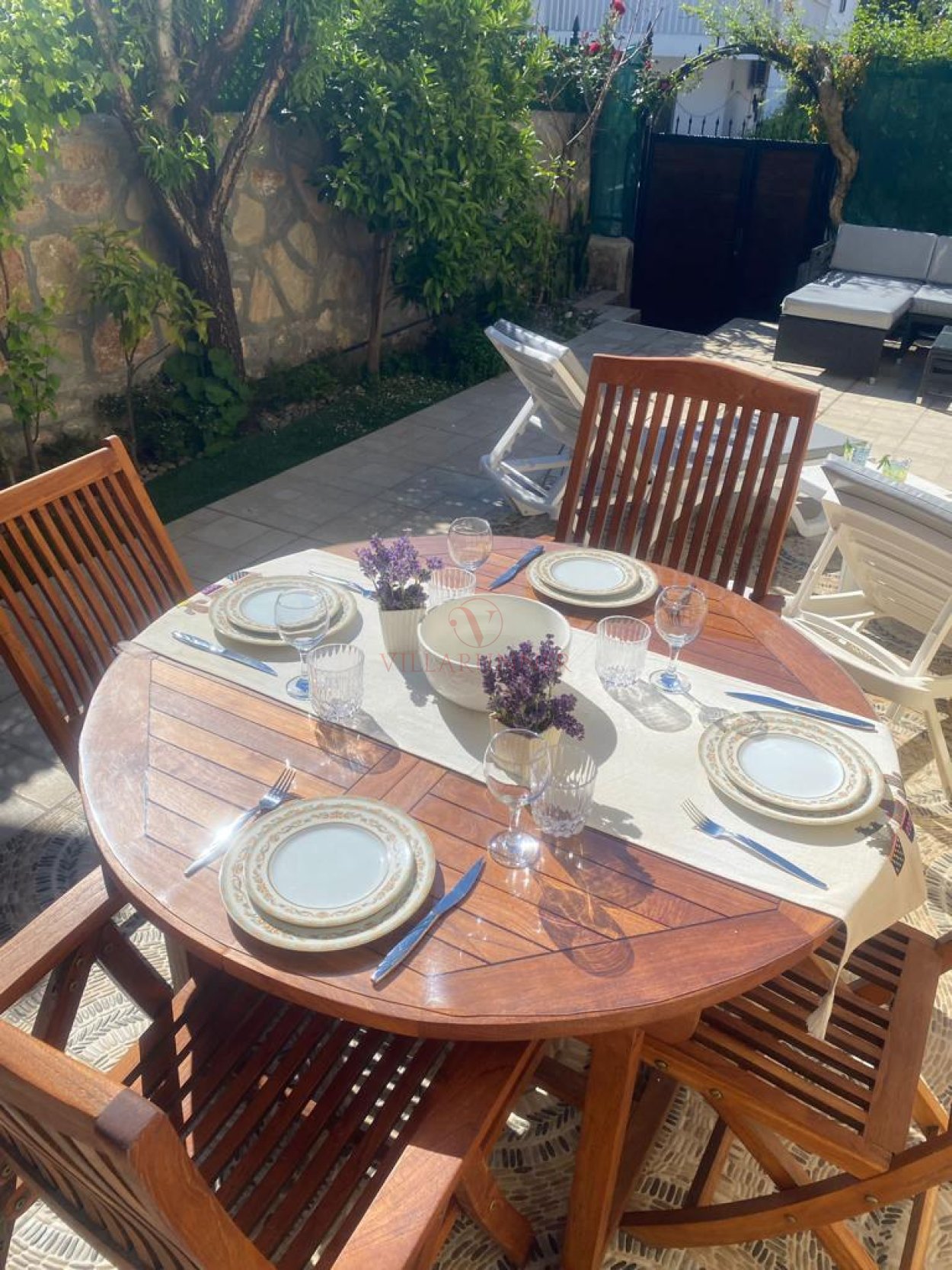 Bahçemizde oturma grubu (iki adet ikili koltuk + masa), verandamızda oturma grubu + orta sehpa, televizyon, yemek masası ve sandalyeler bulunmaktadır.