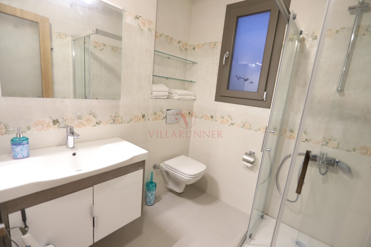 Banyo: Villamızda toplam 3 banyo (1 ebeveyn), 1 wc, çamaşır makinesi bulunmaktadır.