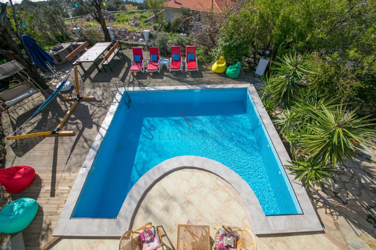 750 x 550 x 150 cm ölçülerindedir. Havuz alanında 4 şezlong ve şemsiye bulunmaktadır.