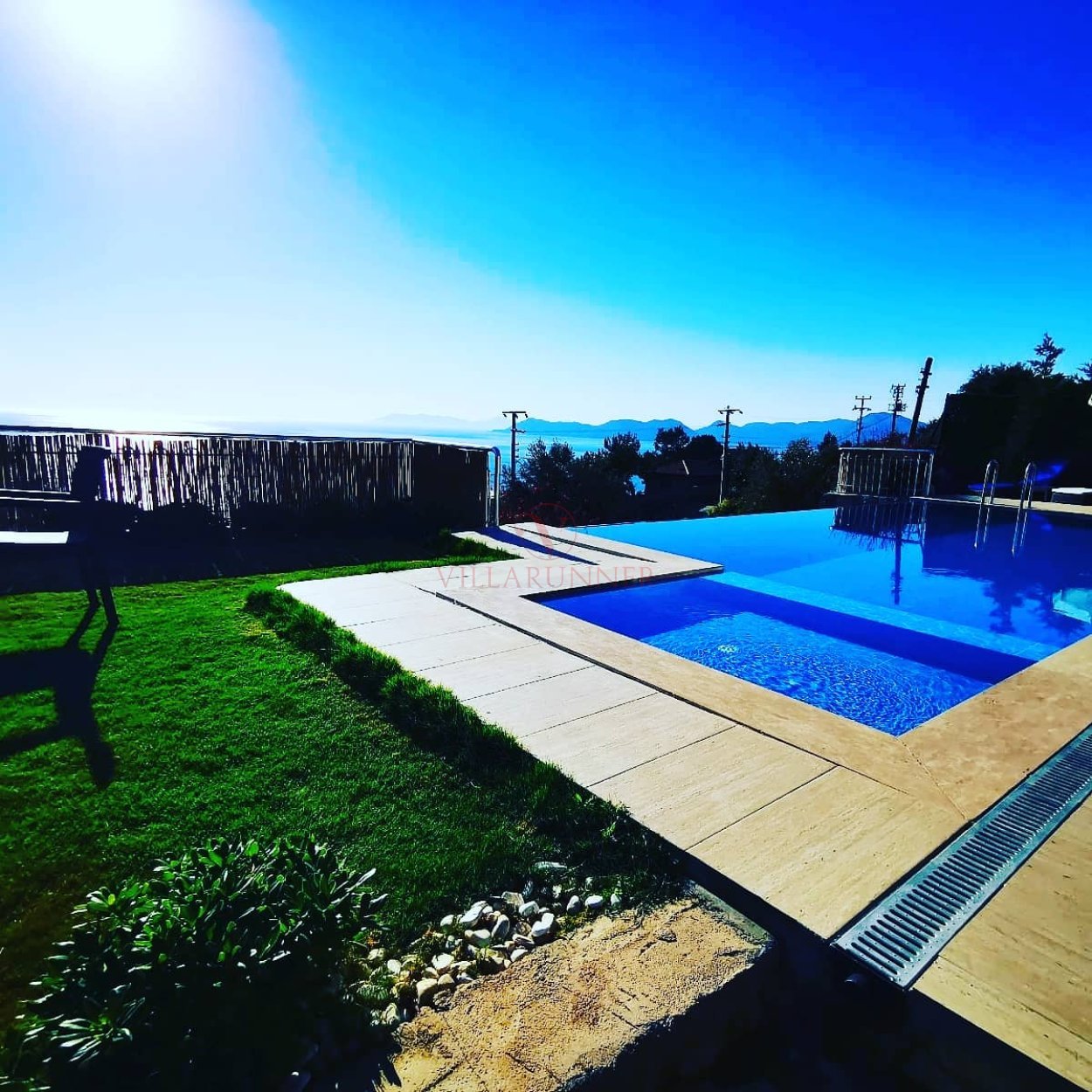 Oturma grubu, klima, TV, deniz manzarası, havuza çıkış.