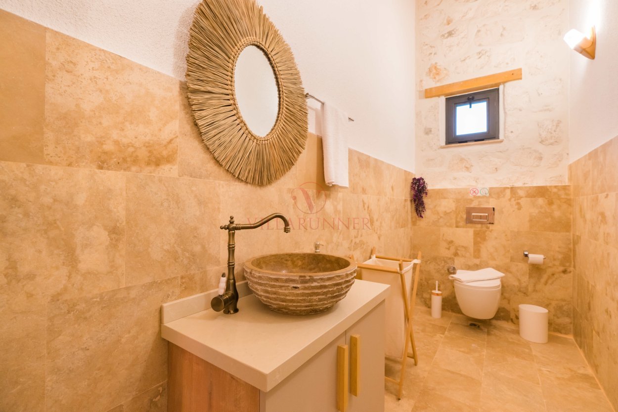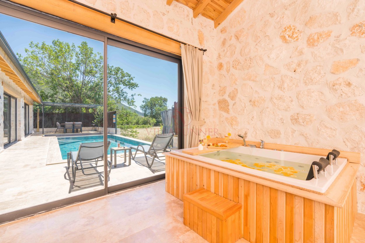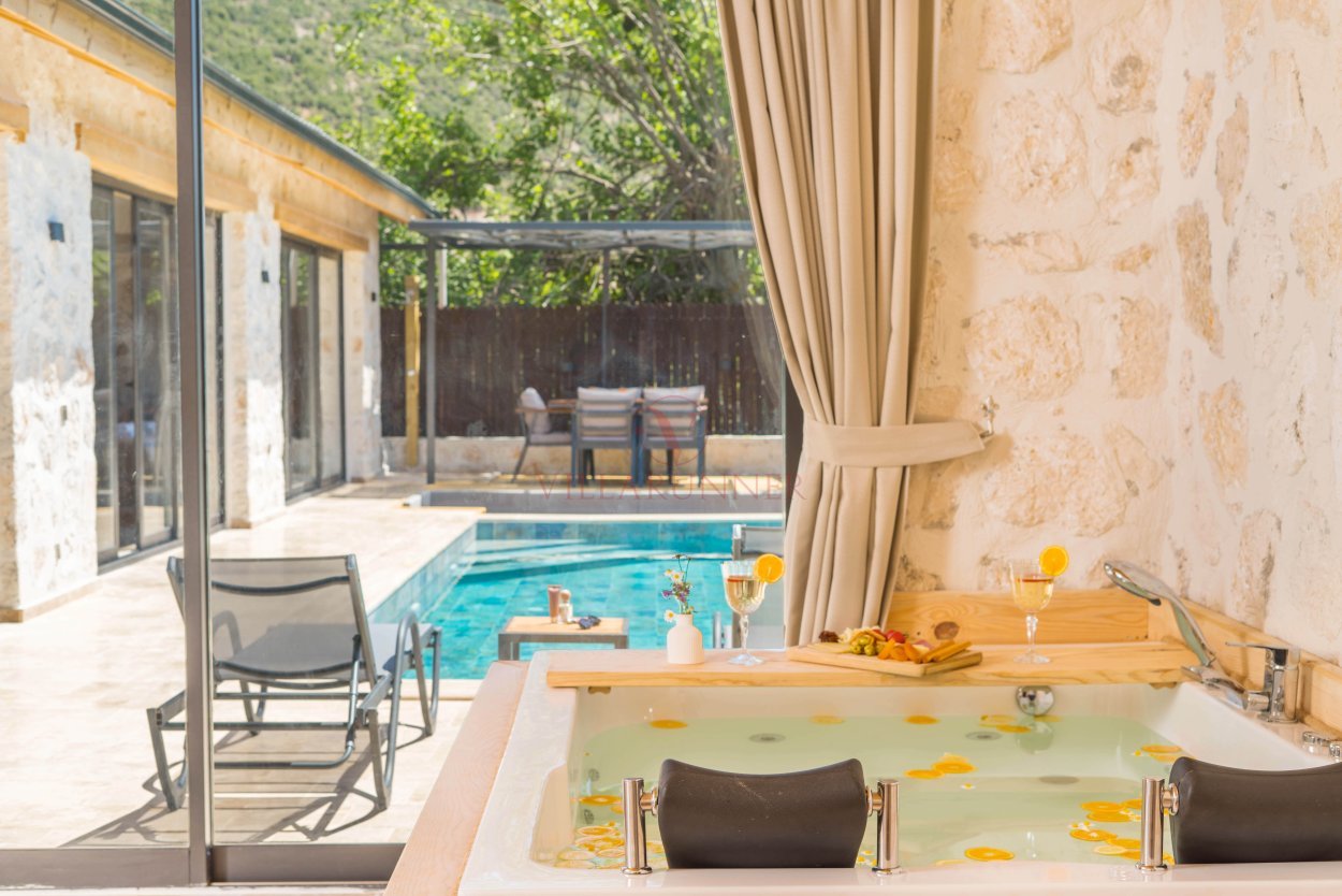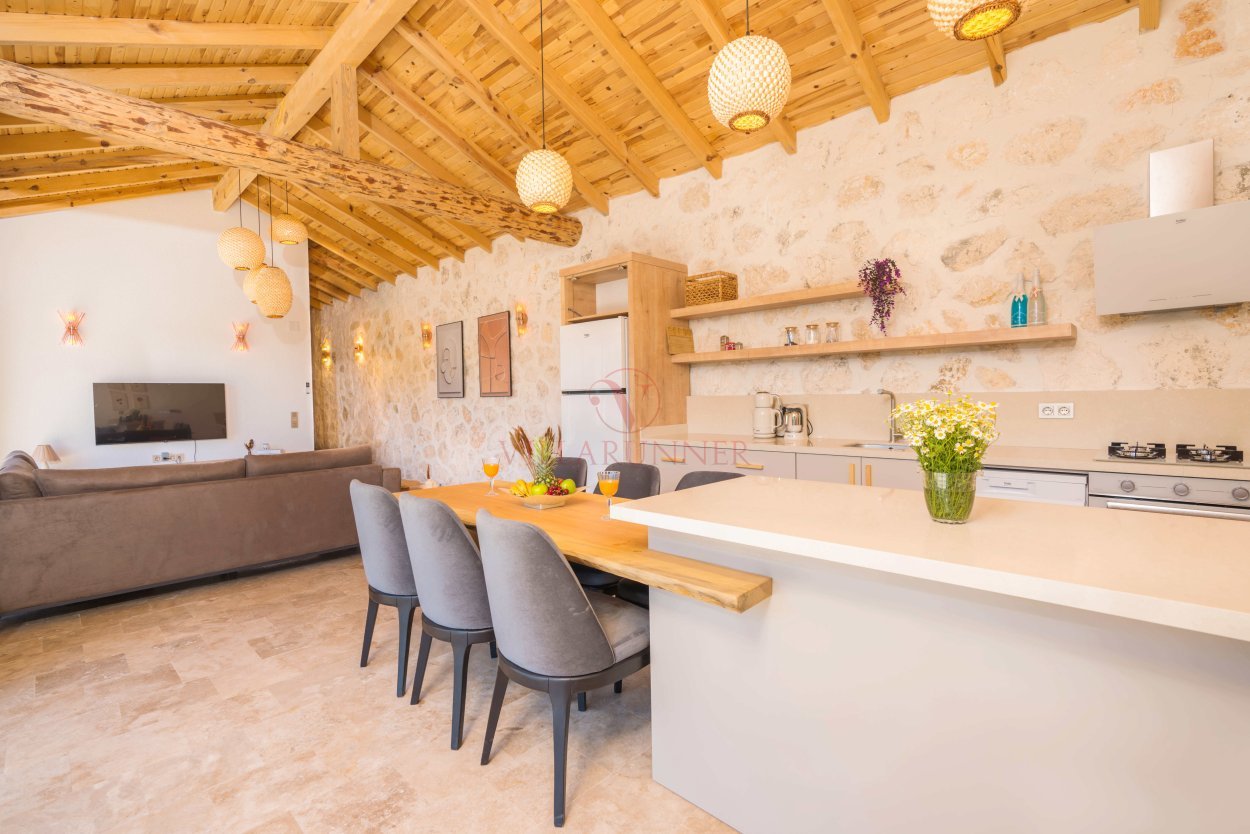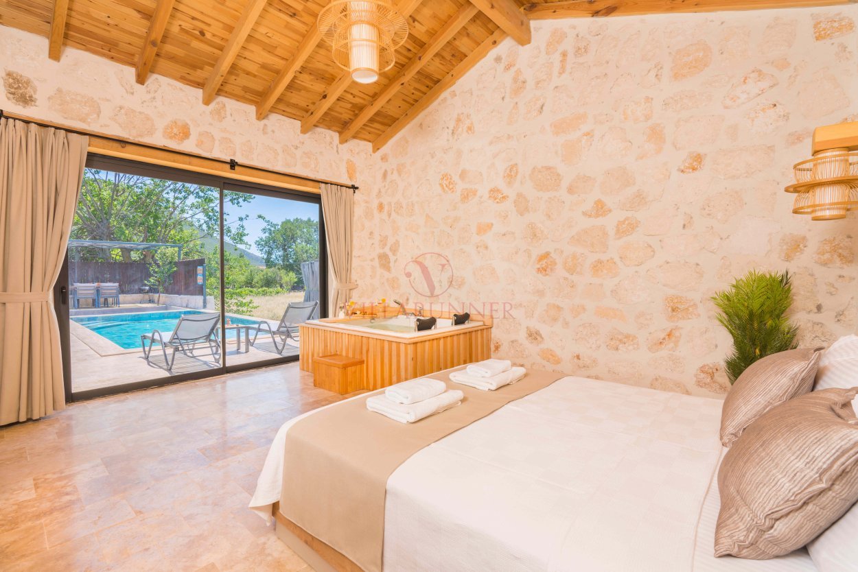 Kalkan'ın huzur dolu doğasında dağ manzarasına sahip lüks villalardan biri olan Villa Alaf, misafirlerine taş evin serin duvarları arasında ve ahşap çatının sıcacık atmosferinde huzurlu bir tatil imkanı sunuyor. Müstakil havuzu olan tek katlı villanın 4 misafir kapasitesi var. Master yatak odasında bir çift kişilik yatak ve jakuzi; diğer odada ise iki adet tek kişilik yatak var. Odaların ikisinde de klima mevcut. Villanın iki yatak odasına ait ebeveyn banyoların yanı sıra bir de ortak banyosu bulunuyor. Villada odalardan ve ortak yaşam alanlarından havuza geçiş sağlanabiliyor. Villa Alaf korunaklı bahçesinin ardında keyif dolu tatil anıları vaadiyle kapılarını ilk kez bu yıl misafirlere açıyor.
