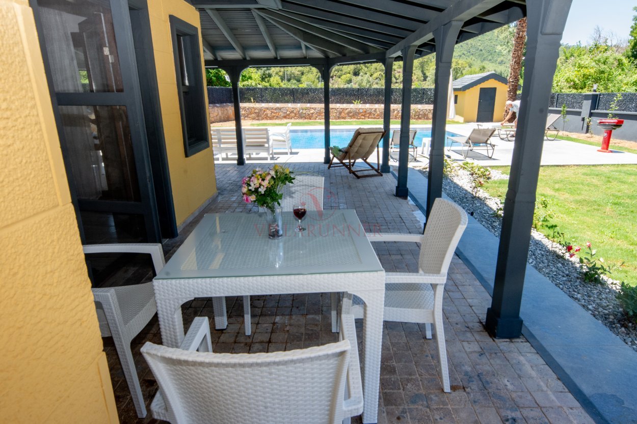 Havuz 1150 cm x 700cm x 150cm ölçülerinde geniş bir yüzme havuzudur. Villanın en keyifli bölümlerinden biri olan bahçede ise şezlong, bahçe yemek masa ve sandalyeler ve mangal ekipmanı bulunmaktadır.