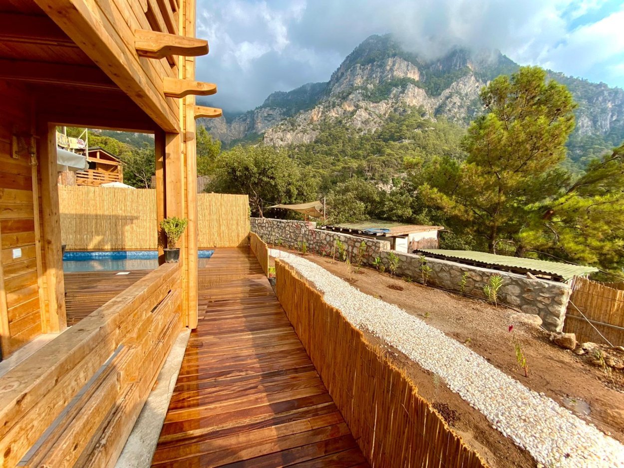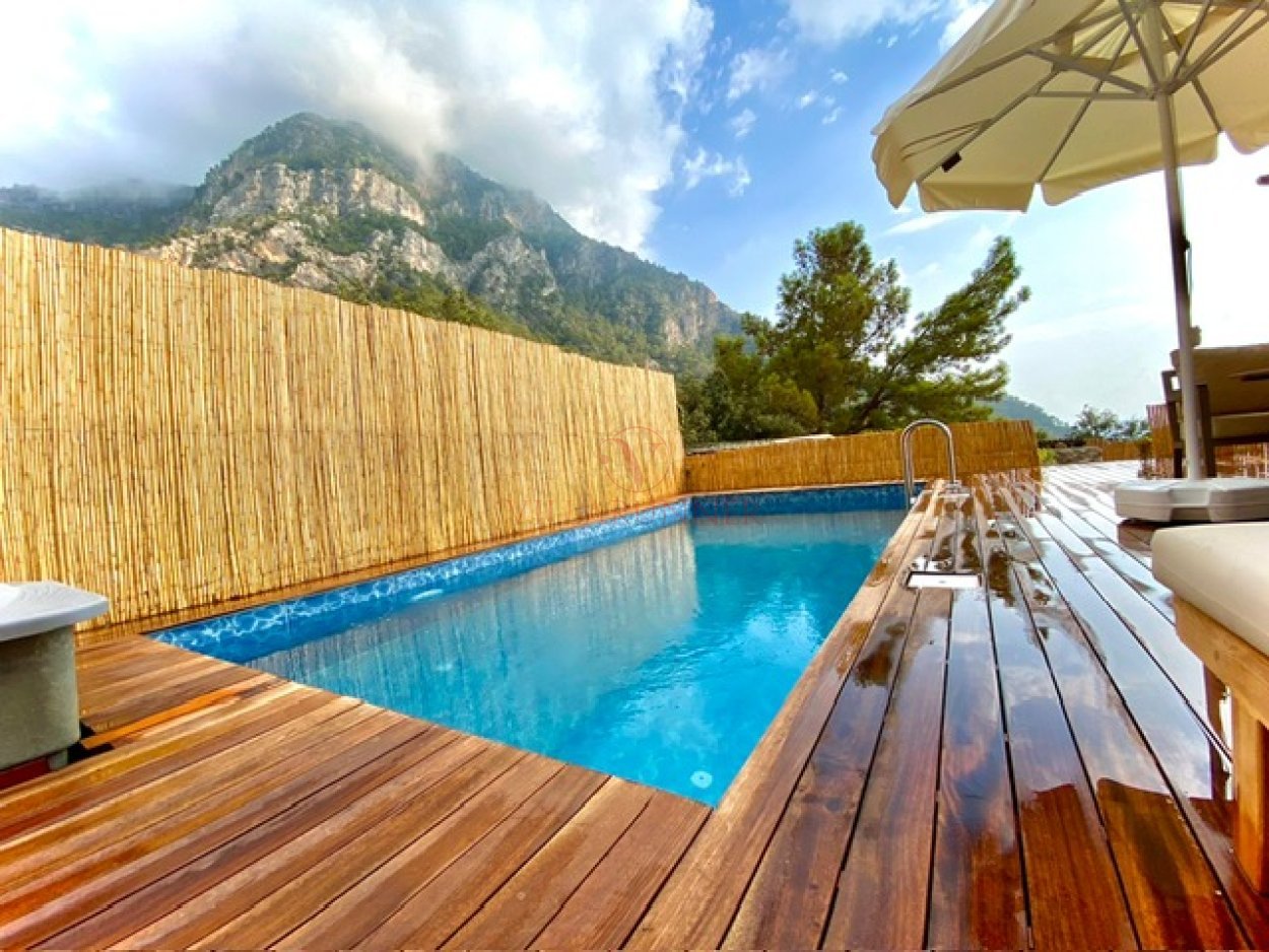 Fethiye'ye 30 km uzaklıktaki Faralya köyünün bakir koyu Kabak'ta yer alan villa, tasarımıyla öne çıkan tatil evlerinden biridir. 200 metre uzunluğunda incecik kumlardan oluşan Kabak Koyu, Ölüdeniz'e 17, Kelebekler Vadisi'ne 4 km mesafede olduğundan misafirlerine unutulmaz bir plaj keyfi sunmaktadır. Villa, hem bu özel plajlara yakınlığı hem de özel bir havuz imkanı sunması bakımından benzersizdir. Üç kişi kapasiteli ve tek yatak odası bulunan villanın salonunda klima ve televizyon bulunmaktadır. Mutfakta tüm mutfak gereçler mevcuttur. Villaya ait olan özel havuzun bulunduğu alanda 2 adet şezlong ve şemsiye vardır.