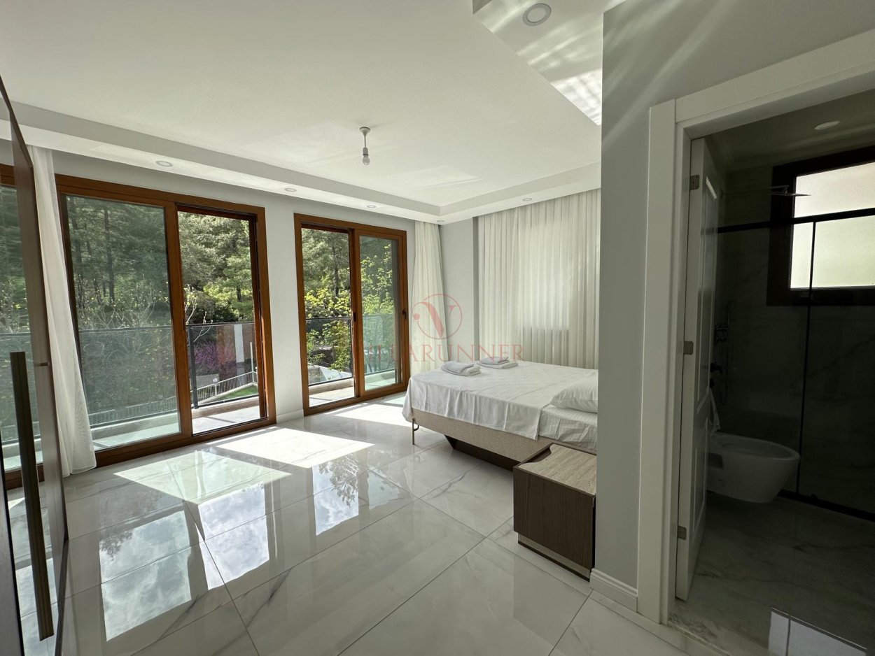 Villanın korunaklı özel yüzme havuzu 400 x 1000 cm ölçülerindedir. Geniş havuz terasında rattan oturma grubu, 4 adet şezlong, barbekü alanı ve doğayla iç içe keyifli vakit geçirebileceğiniz alanlar bulunmaktadır. Orman havası ve deniz manzarasının buluştuğu bu huzurlu atmosfer, size adeta terapi etkisi yaratacak.