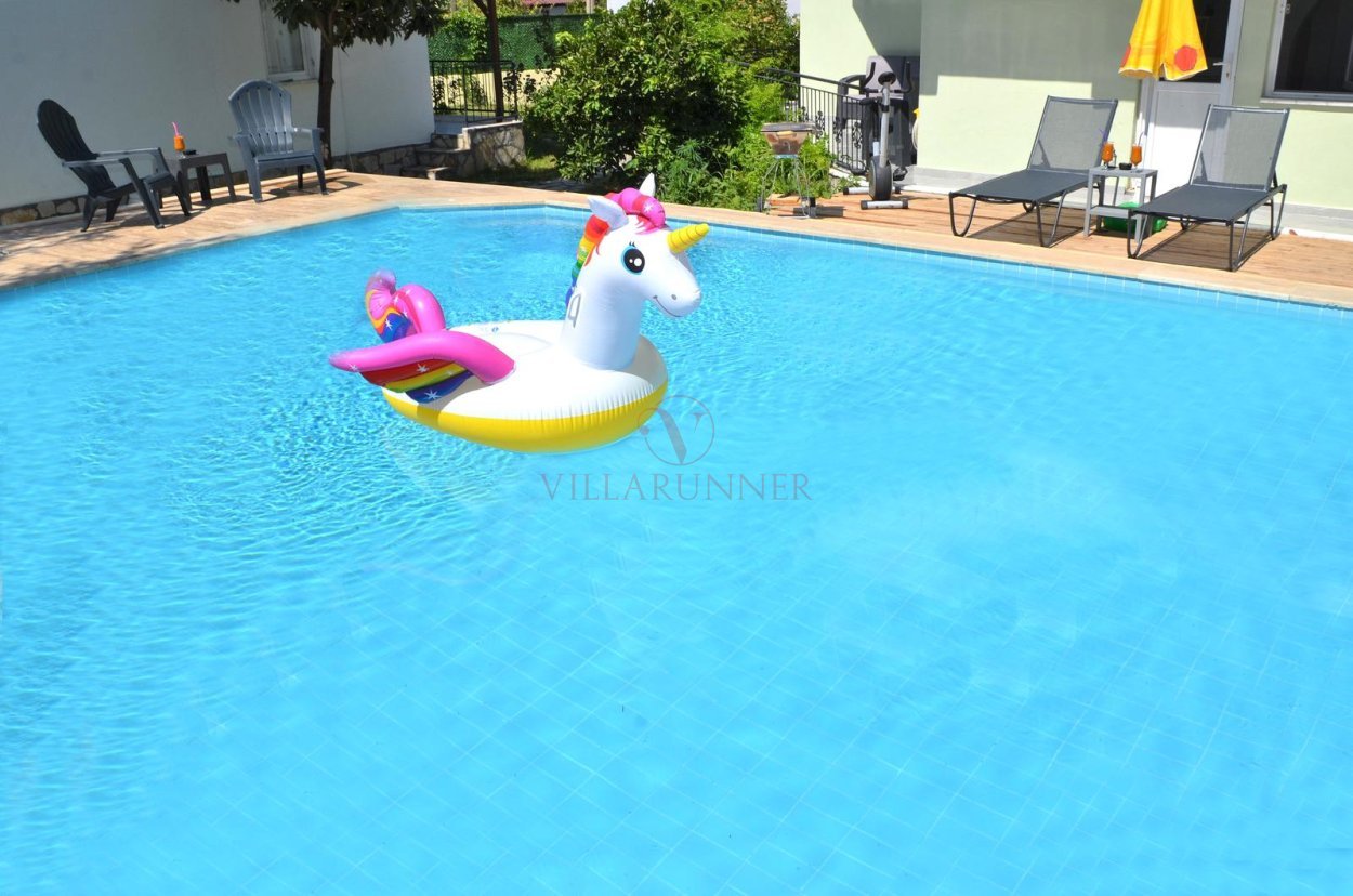 Havuz 400 x 800 x 170 cm ölçülerindedir. Havuz alanında 2 adet şezlong, şemsiye, yemek masası ve oturma grubuna ek olarak mangal ekipmanı mevcuttur.