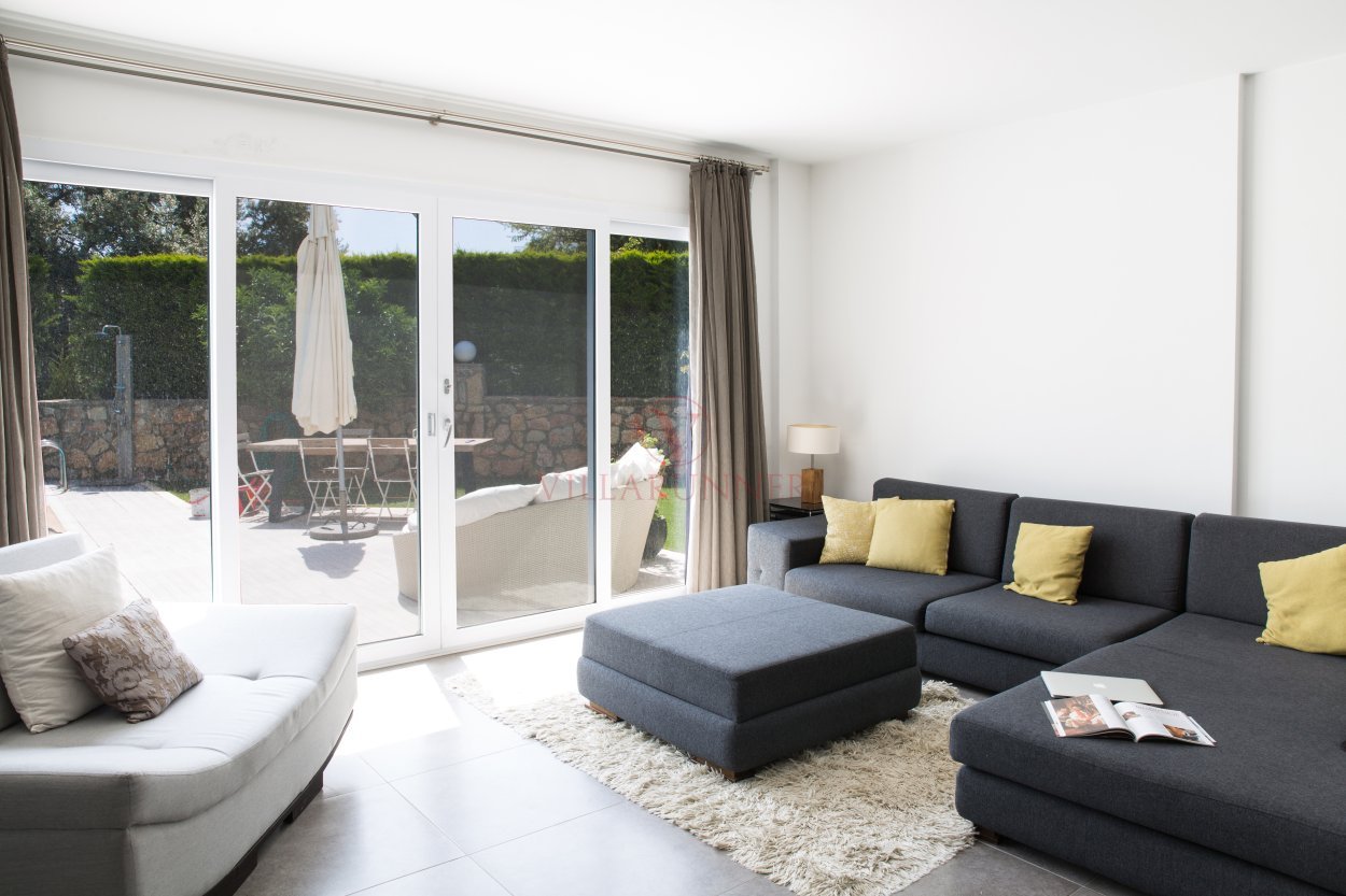 Zemin Kat: Salon, Mutfak, Yemek bölümü, 1 Banyo, ve Çalışma masasının bulunduğu alan. Özel havuza ve bahçeye açılan geniş bir teras, 2 adet şezlong, Bahçe yanı Terasta Gömme Mangal