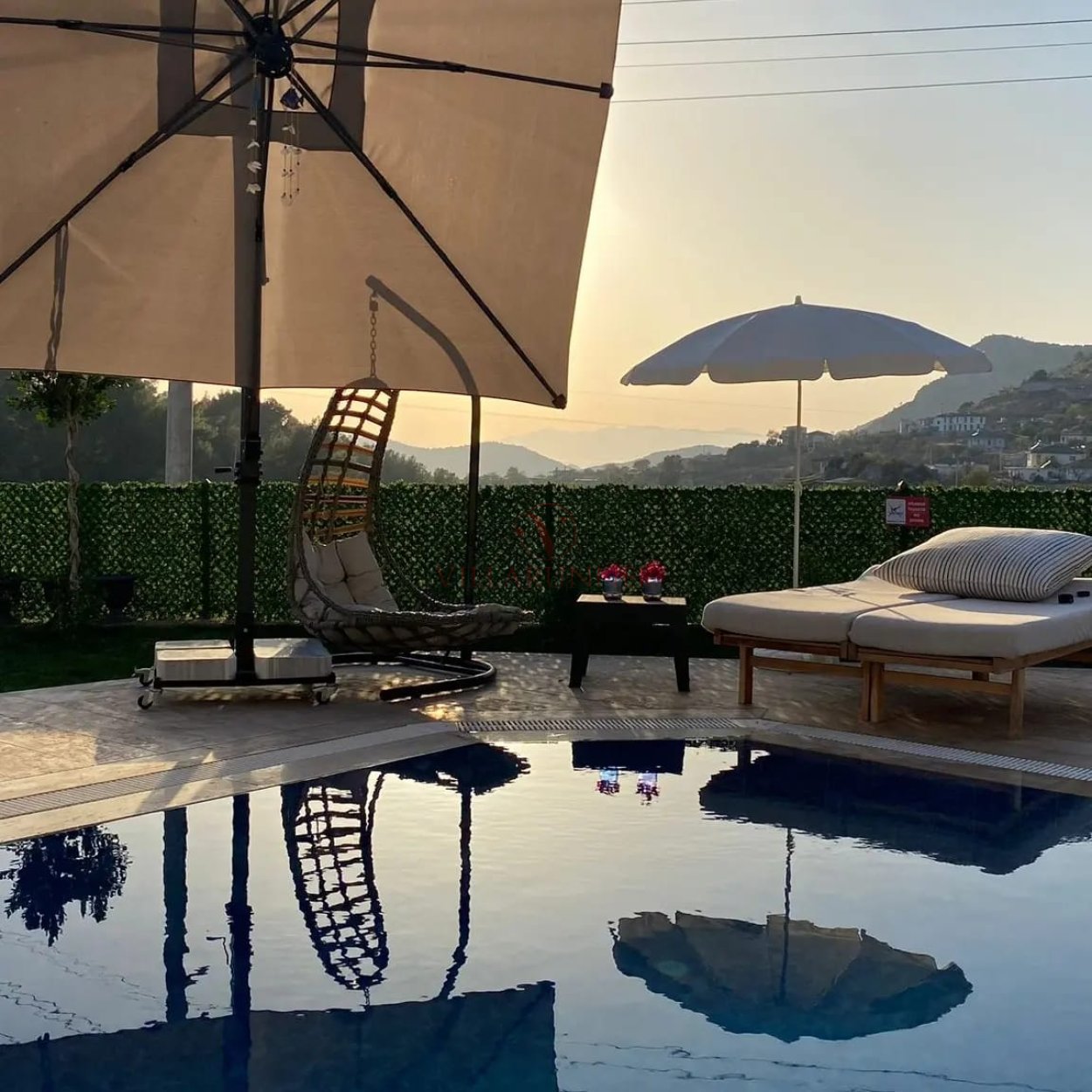 Havuz: 700 cm x 400 cm x 165 - 170 cm ölçülerinde özel yüzme havuzu, 6 adet şezlong, 2 adet şemsiye bulunmaktadır.