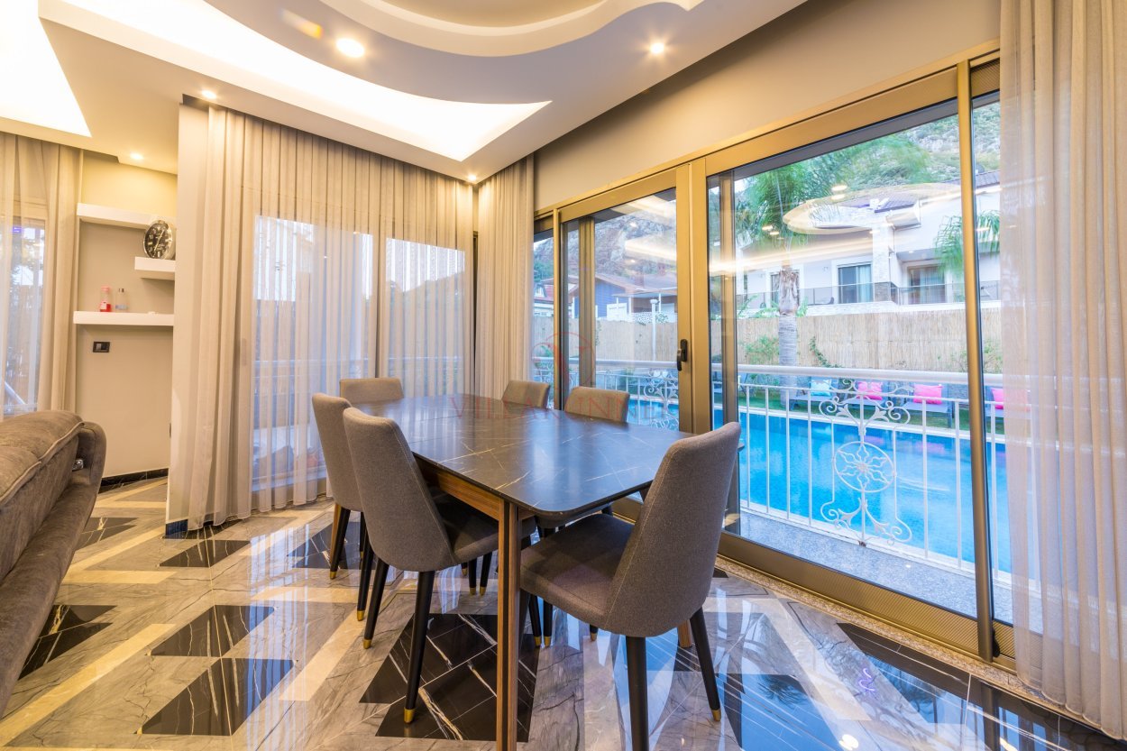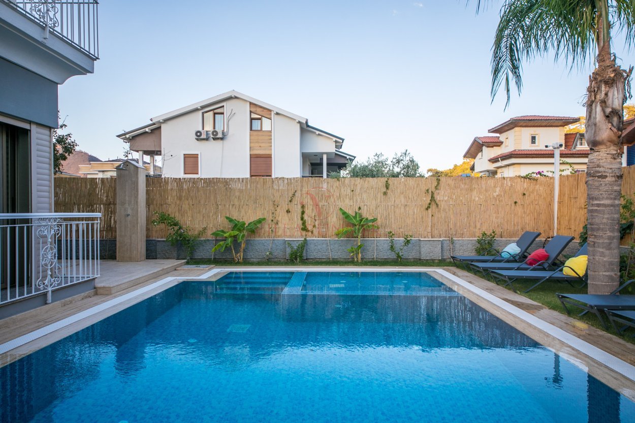 İçmeler'in kalbinde yer alan villamız geniş ve ferah olup denize yürüme mesafesindedir. Geniş havuzu ve yemyeşil bahçesi huzurlu bir tatil sunuyor. Kalabalık aileler için ideal. Villamız 3 katlı, 5 yatak odası, 3 banyo (1 ebeveyn), Türk hamamı, özel havuz ve bahçeden oluşmaktadır. Bahçedeki barbekü alanında yer alan tasarım harikası yemek masası yazın kavurucu sıcağında içinizi serinletecek şekilde tasarlandı. Güvenlik sistemi kameralar ve alarmlar içerir. Kısmen korunaklı bir villadır.