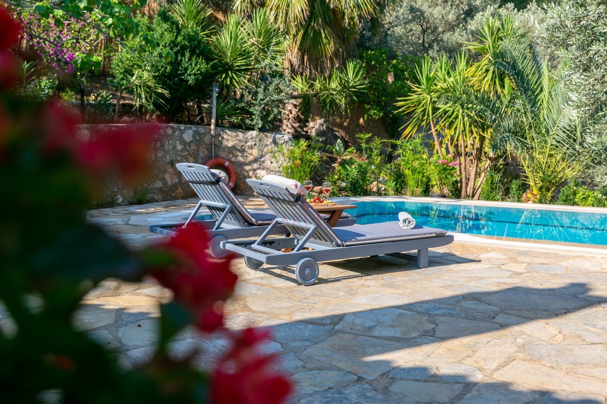 600 x 300 x 170 cm ölçülerindeki özel yüzme havuzuna ek olarak 100x100 ölçülerinde bir bebek havuzu bulunmaktadır. Havuz alanında ayrıca iki adet şezlong, bir oturma grubu, salıncaklar ve şemsiye vardır.