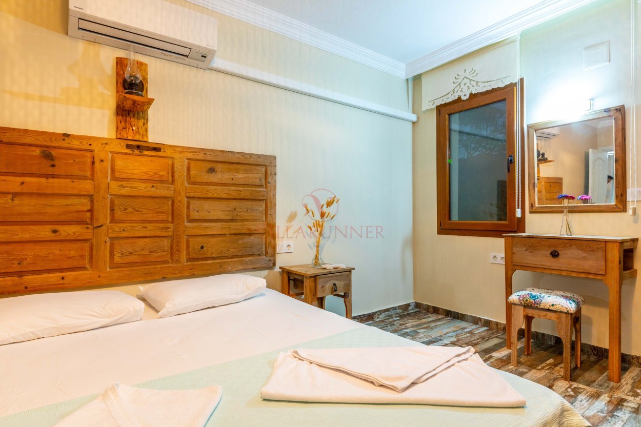 Marmaris, Selimiye'de yer alan Jasmin, iki katlı, üç yatak odası ve üç banyoya sahip denize 1.5 km mesafede, 6 misafir kapasiteli bir tatil birimidir. Villa, bulunduğu bahçeyi havuzlu olan diğer Jasmin Villa'yla paylaşmaktadır. Deniz ve havuz manzarasına sahip yatak odalarında iki adet çift kişilik, iki adet de tek kişilik yatak vardır. Yatak odalarının biri, villanın giriş katında, diğer ikisi ise birinci katta bulunmaktadır. Birinci kattaki yatak odaları deniz manzaralıdır. Villanın mutfağı tam donanımlıdır. Ev sahibi, solda yer alan villanın altındaki dairede ikamet etmektedir ancak villaların girişleri bağımsızdır. Selimiye'nin hemen girişinde bulunan villada araç park sorunu yoktur.