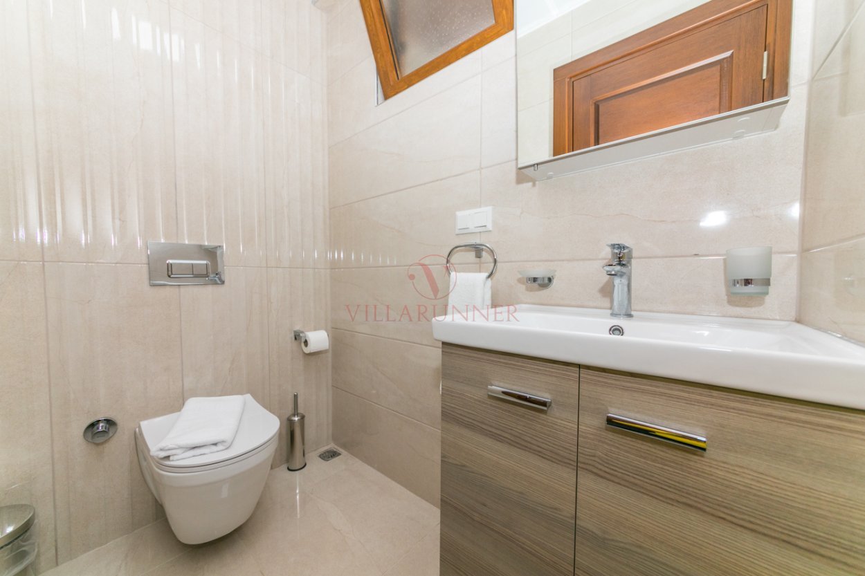 * Banyo: 2 banyo (1 ebeveyn) + 1 WC (zemin kat), çamaşır makinası, havlu mevcuttur.