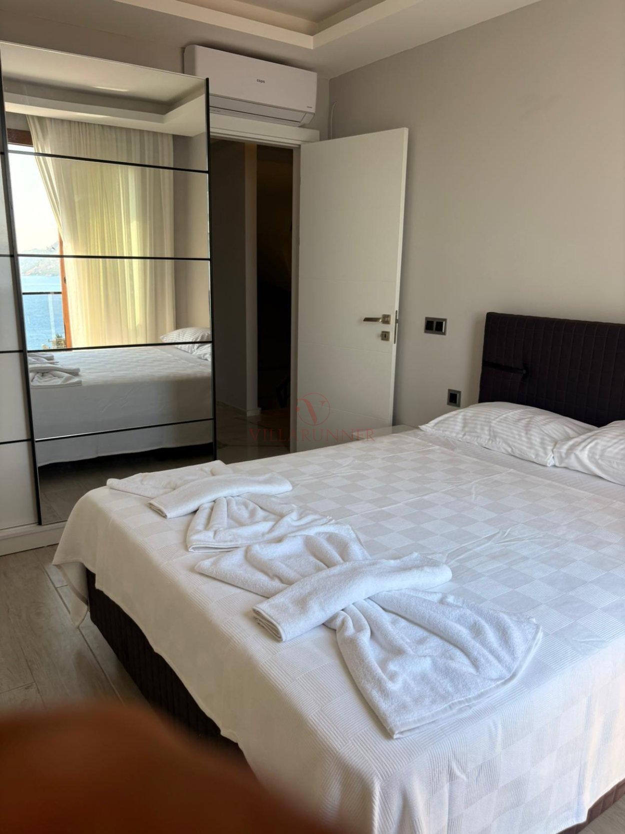 Modern tasarımı ve geniş kullanım alanları ile öne çıkan Villa Runner’da özel yüzme havuzu (6,5m x 3,5m, 1,5m derinlik), korunaklı bahçe, mangal alanı ve şezlonglu güneşlenme terası bulunur. Geniş mutfağında ihtiyaç duyabileceğiniz tüm ekipmanlar (buzdolabı, bulaşık makinesi, fırın, ocak, tost makinesi, kahve makinesi, su ısıtıcı) eksiksiz olarak yer alır.