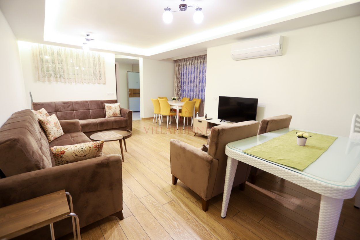 Salon: Salonumuzda 2 adet üçlü kanepe, 2 adet tekli koltuk, sehpa, yemek masası ve sandalyeler, klima, televizyon, sehpa, balkon, panjur (zemin kat)