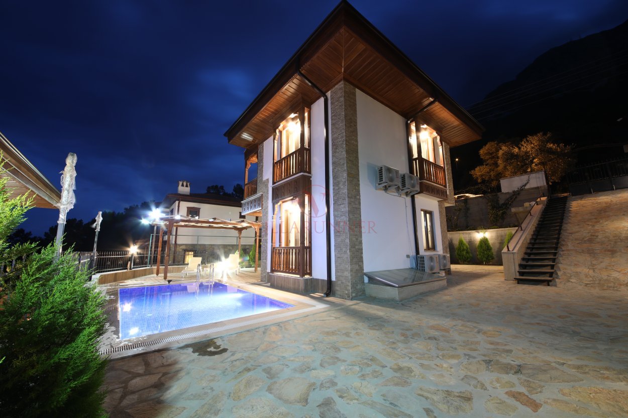 Villamız 3 katlı, 3 yatak odası, 2 banyo, özel havuz ve bahçeye sahiptir.