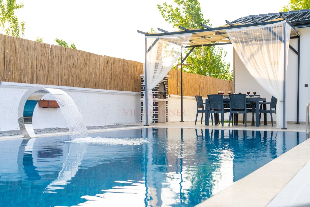 800 x 400 x 145 cm ölçülerindedir. Ayrıca 150 x 400 x 70 cm ölçülerinde bir çocuk havuzu bulunmaktadır. Bahçe alanında mangal ekipmanı, şezlonglar ve çocuklar için salıncak ve kaydırak mevcuttur.