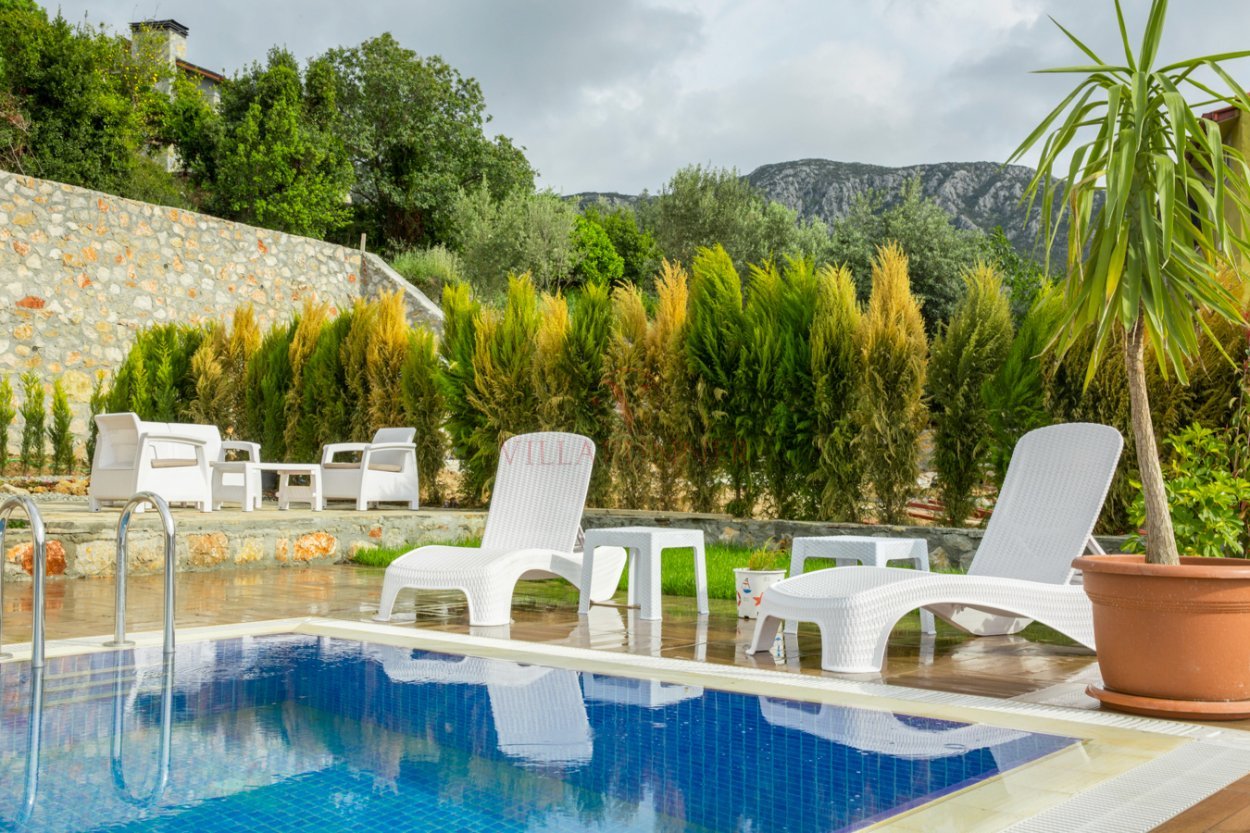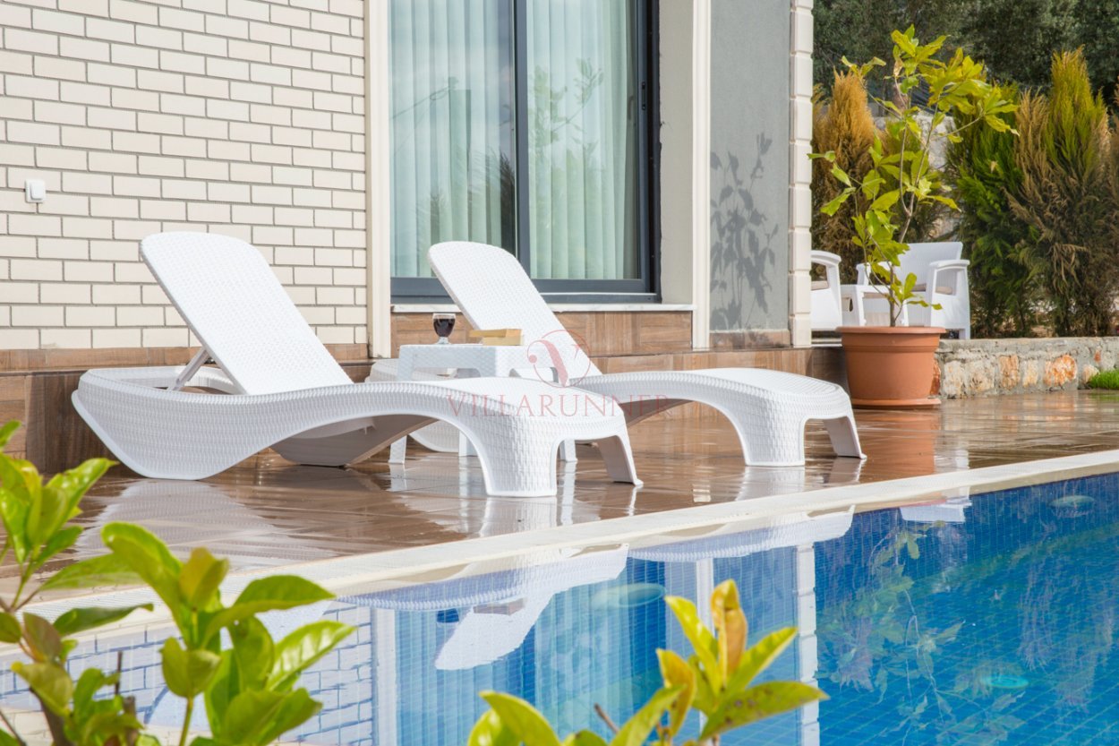 640 x 420 x 150 cm ölçülerinde özel yüzme havuzu bulunmaktadır. Ek olarak 4 adet şezlongu bulunmaktadır. Muhteşem Deniz manzarasıyla birlikte bahçesindeki bir de oturma grubu mevcuttur.