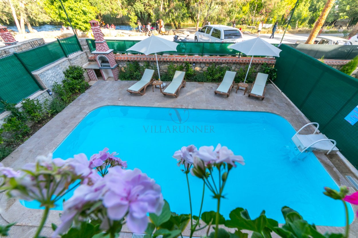 Villada 400 x 700 x 150 cm ölçülerinde özel yüzme havuzu, 4 şezlong ve 2 şemsiye bulunmaktadır. Ayrıca bahçede yemek masa ve sandalyeleri ve mangal mevcuttur.