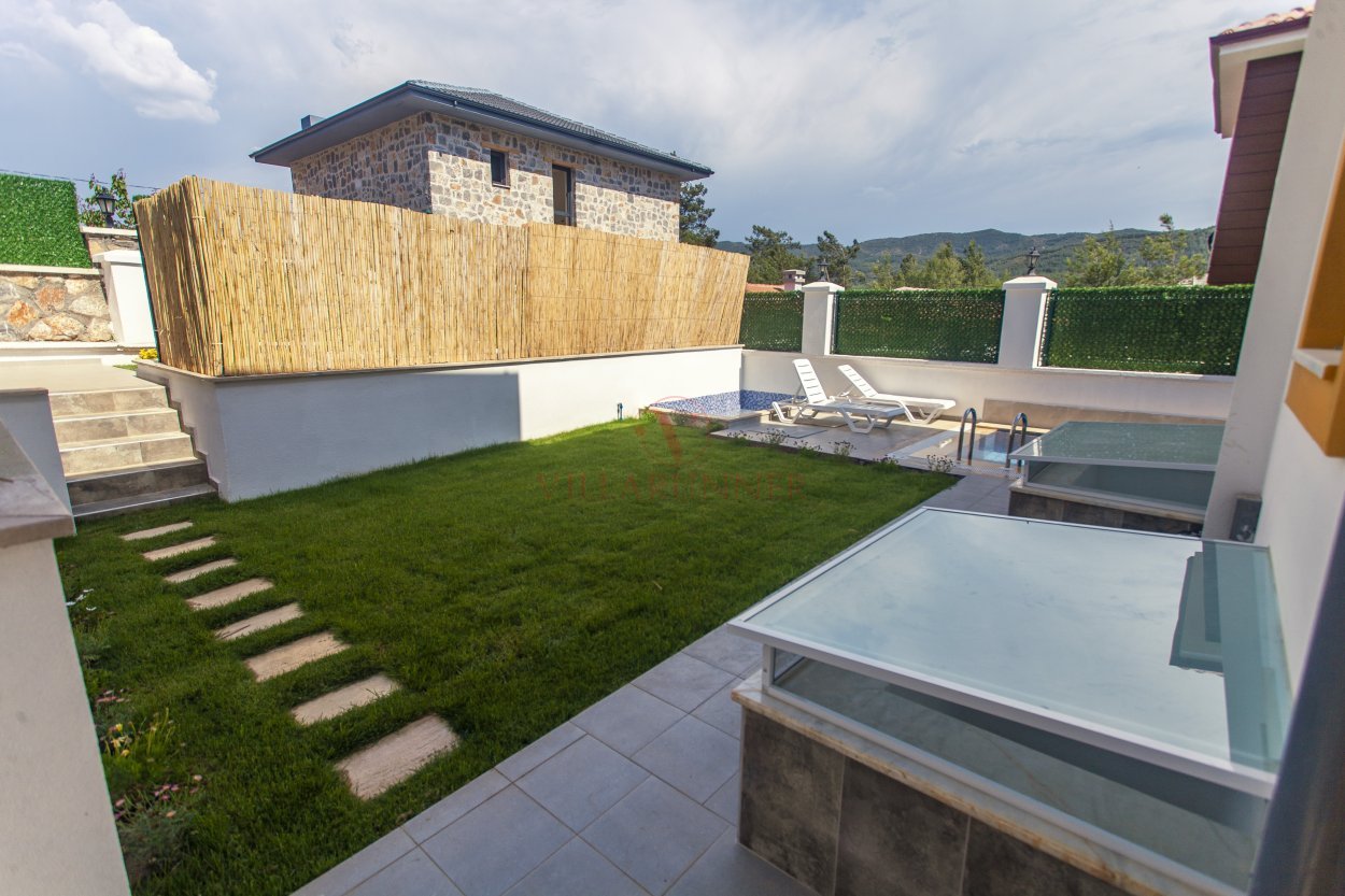 Villada 400 x 300 x 140 cm ölçüsünde özel bir yüzme havuzu ile şezlong ve oturma alanı mevcuttur.
