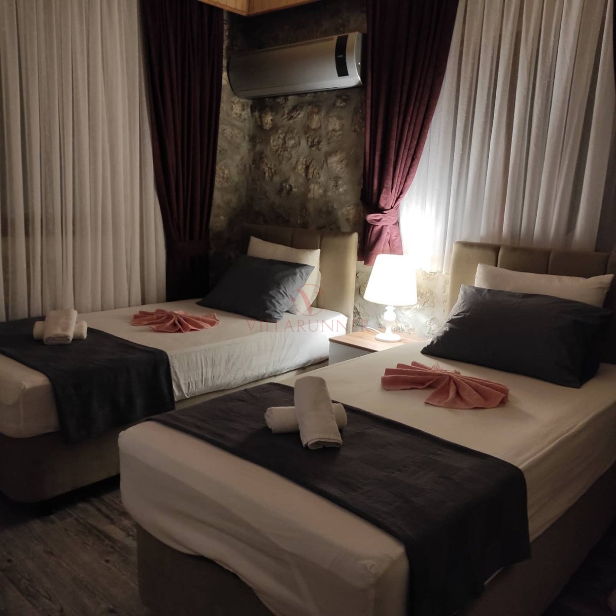 - Yatak Odası: İki adet tek kişilik yatak, klima, dolap banyo,