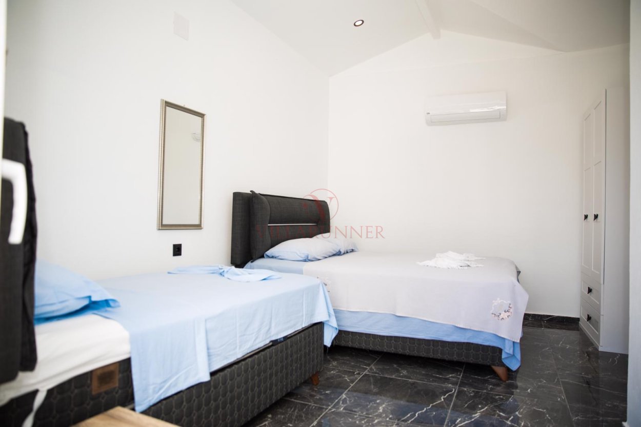 Villada 4 Yatak Odası bulunmaktadır. Her odada Çift Kişilik veya 2 Adet Tek Kişilik Yatak Mevcuttur.