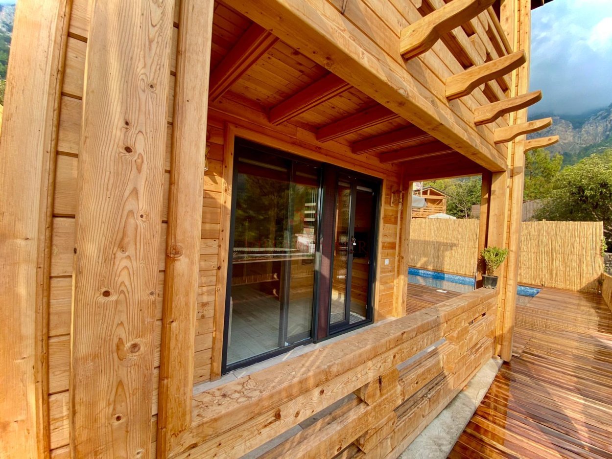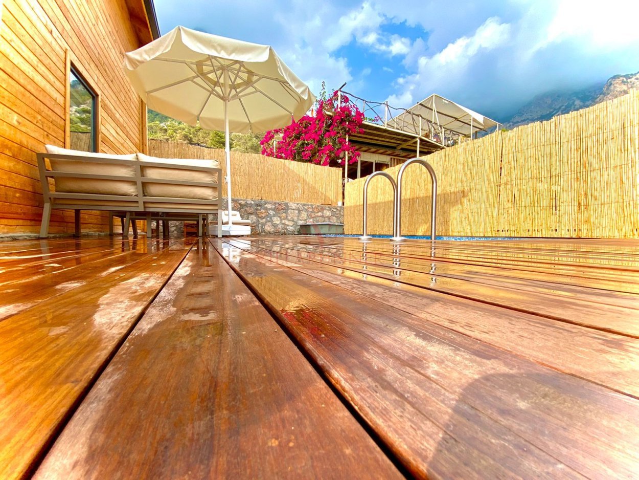 Fethiye'ye 30 km uzaklıktaki Faralya köyünün bakir koyu Kabak'ta yer alan villa, tasarımıyla öne çıkan tatil evlerinden biridir. 200 metre uzunluğunda incecik kumlardan oluşan Kabak Koyu, Ölüdeniz'e 17, Kelebekler Vadisi'ne 4 km mesafede olduğundan misafirlerine unutulmaz bir plaj keyfi sunmaktadır. Villa, hem bu özel plajlara yakınlığı hem de özel bir havuz imkanı sunması bakımından benzersizdir. Üç kişi kapasiteli ve tek yatak odası bulunan villanın salonunda klima ve televizyon bulunmaktadır. Mutfakta tüm mutfak gereçler mevcuttur. Villaya ait olan özel havuzun bulunduğu alanda 2 adet şezlong ve şemsiye vardır.