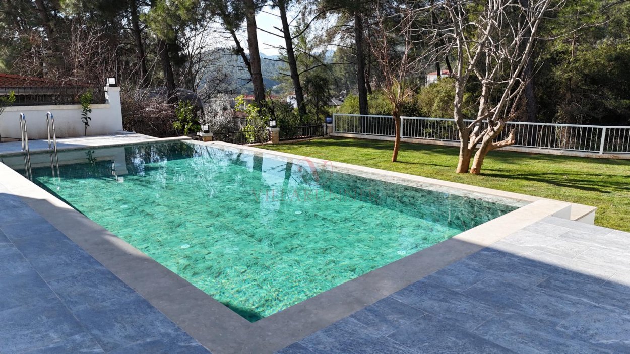 Villanın korunaklı özel yüzme havuzu 400 x 1000 cm ölçülerindedir. Geniş havuz terasında rattan oturma grubu, 4 adet şezlong, barbekü alanı ve doğayla iç içe keyifli vakit geçirebileceğiniz alanlar bulunmaktadır. Orman havası ve deniz manzarasının buluştuğu bu huzurlu atmosfer, size adeta terapi etkisi yaratacak.