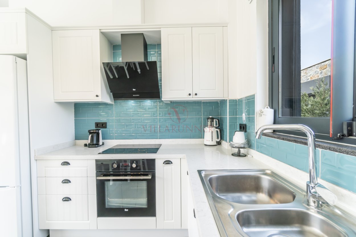 Bodrum, Gündoğan Küçükbük’te çocuklu ailelerin sıklıkla tercih ettiği kum sahile kısa bir yürüyüş mesafesinde bulunan Mystery, 6 misafir kapasitesi ile özel havuz imkanı sunan lüks bir villadır. Villa kalabalıktan uzak bir tatil geçirmek isteyen misafirler için ideal bir konumda bulunmaktadır. 3 yatak odasına kapasitesine sahip olan ve nezih bir site içierisinde yer alan bu şık tatil villa, çekirdek aileler için ideal bir seçimdir. Villanın 1 yatak odası çift kişilik yataklı ve ebeveyn banyoludur. 1 yatak odası açılınca 2 tekli yatak olabilien, tek kişilik yavrulu yataklı ve diğer yatak odası 2 tek kişilik yatağa sahip çocuk odası olarak kullanılmaktadır. Bu 2 yatak odasının ortak kullanımında banyo tuvalet de mevcuttur. Tek katlı olarak tasarlanan Villa Mystery'nin giriş kısmında kış aylarında da keyifle vakit geçirebileceğiniz, şömineli ve alttan ısıtmalı açık plan salon, tam donanımlı mutfak ve ayrı bir yemek alanı bulunmaktadır. Villada özel park yeri mevcuttur.