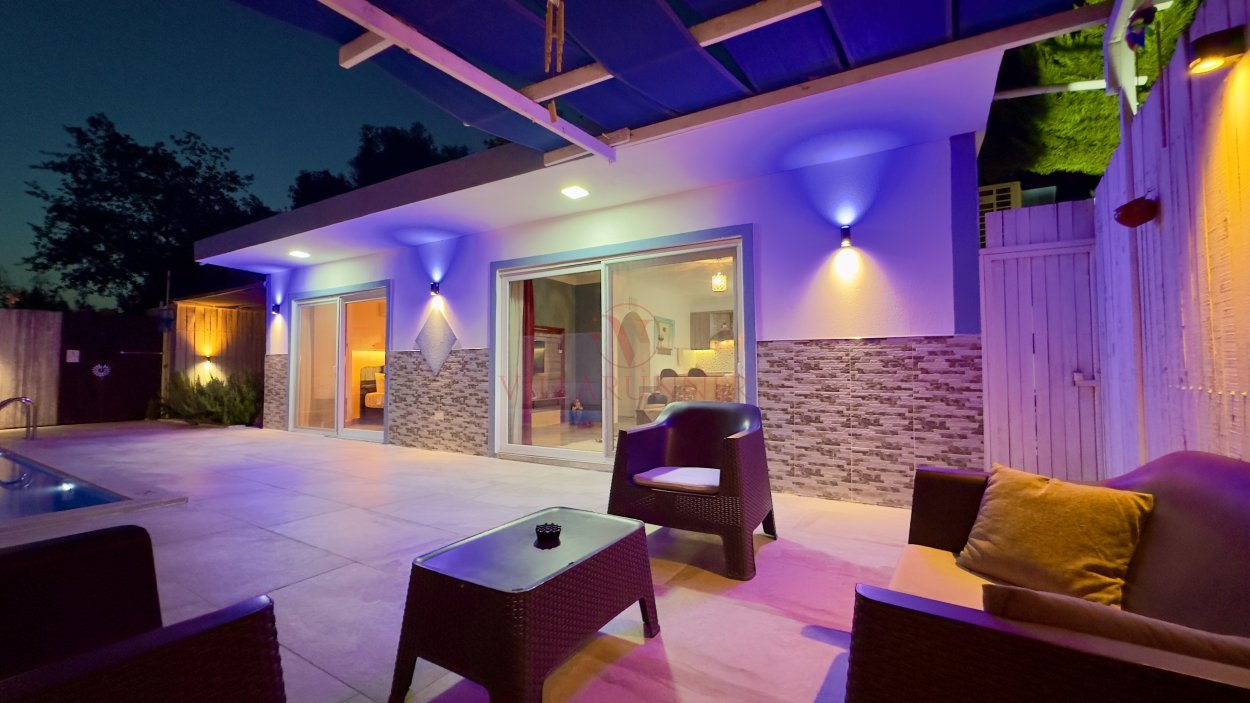 Kalkan Kaş'ın İkizce Mahallesinde Yer Alan Villa Oruç , 1 Yatak Odalı ve Özel Havuzlu Villalardan Biridir.