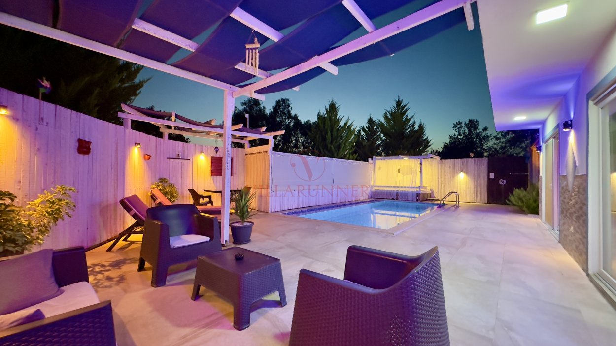 3.5M x 1.50 M x 8.5 m ölçülerinde Özel bir havuza sahiptir. Ayrıca bahçe alanında Şezlong ve Masa takımı mevcuttur.
