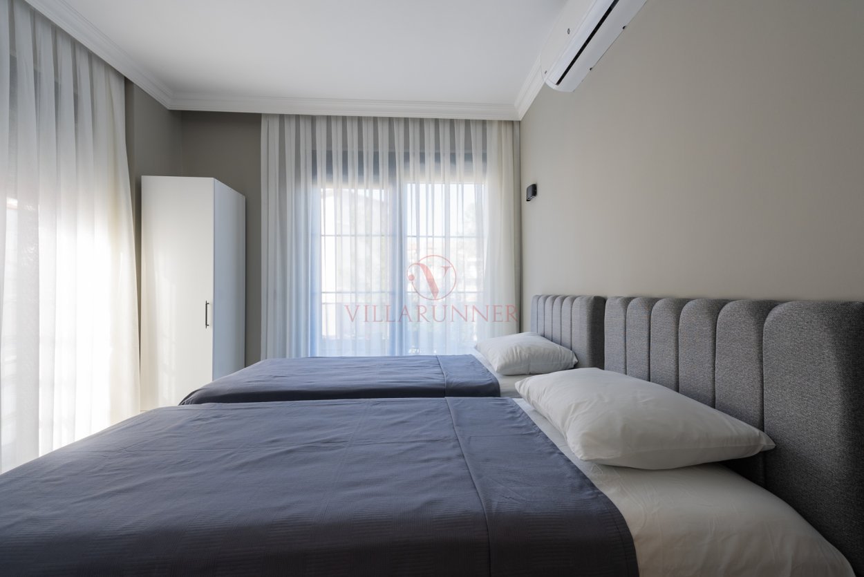 Villada 4 Yatak Odası bulunmaktadır. Her odada Çift Kişilik veya 2 Adet Tek Kişilik Yatak Mevcuttur. Hamam da mevcuttur.