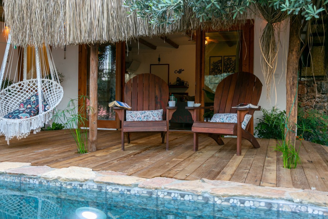 Evde özel yüzme havuzunun yanı sıra 2 adet şezlong, üçlü koltuk, salıncak, masa ve sandalyeler bulunmaktadır. Havuz alanında barbekü ekipmanı mevcuttur.
